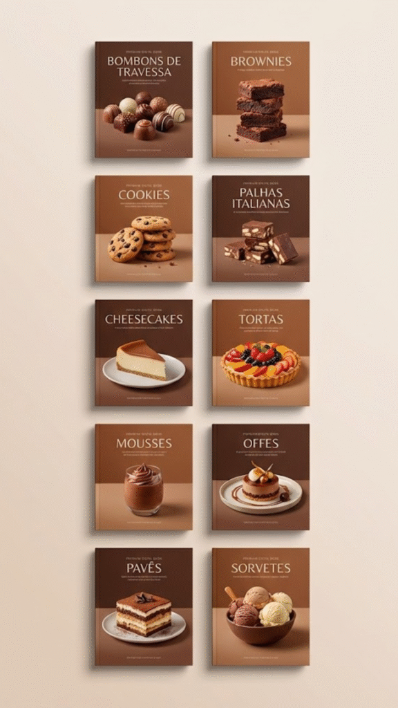 Cada categoria possui 50 receitas organizadas, com variações.